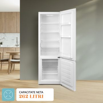 Cu o capacitate neta de 262 litri, combina frigorifica AXCF350E iti ofera spatiul necesar pentru a pastra alimentele proaspete si organizate. Rafturile din sticla si sertarul pentru legume asigura eficienta si acces rapid la produsele depozitate.
